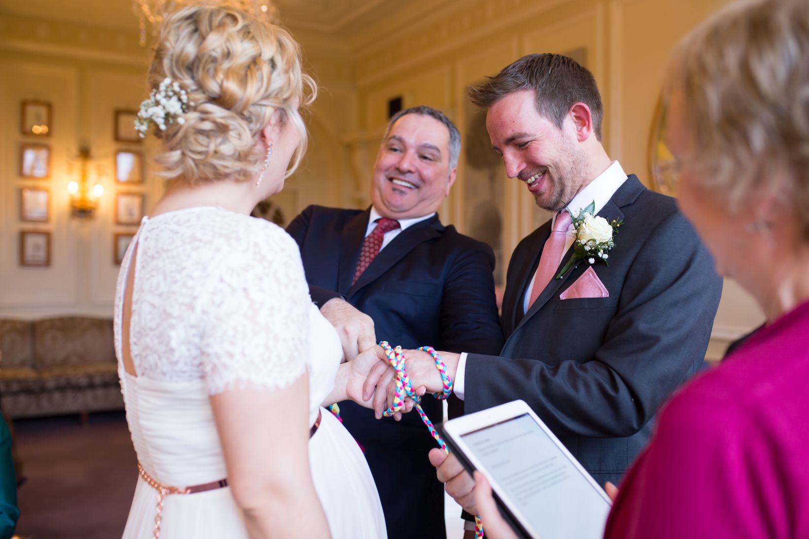 Bovey Castle is located in Dartmoor National Park, surrounded by acres of fields and stunning greenery. A fabulous 5* hotel offered the Couple and their guests the opportunity to have their ceremony in one of the beautifully decorated rooms. They then were invited to a Library room for their refreshments and drinks. The guests cheered the happy newlyweds in a great atmoshpere. After these, we all went outside to make the most of the glorious surroundings and capture some great photos.