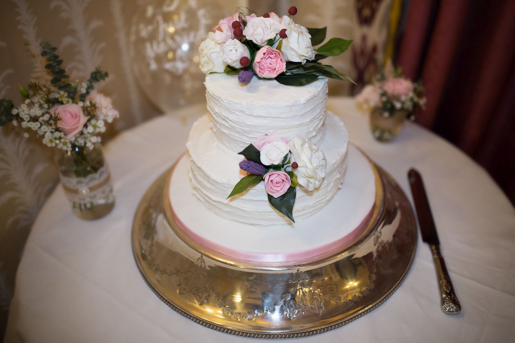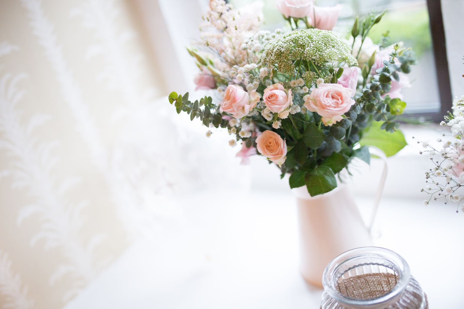 The bride chose to have the room decorated with 'lace & hessian’, giving the room a stylish and timeless look. All the details played beautifully together, with blush pink and whites prevailing in the decor.