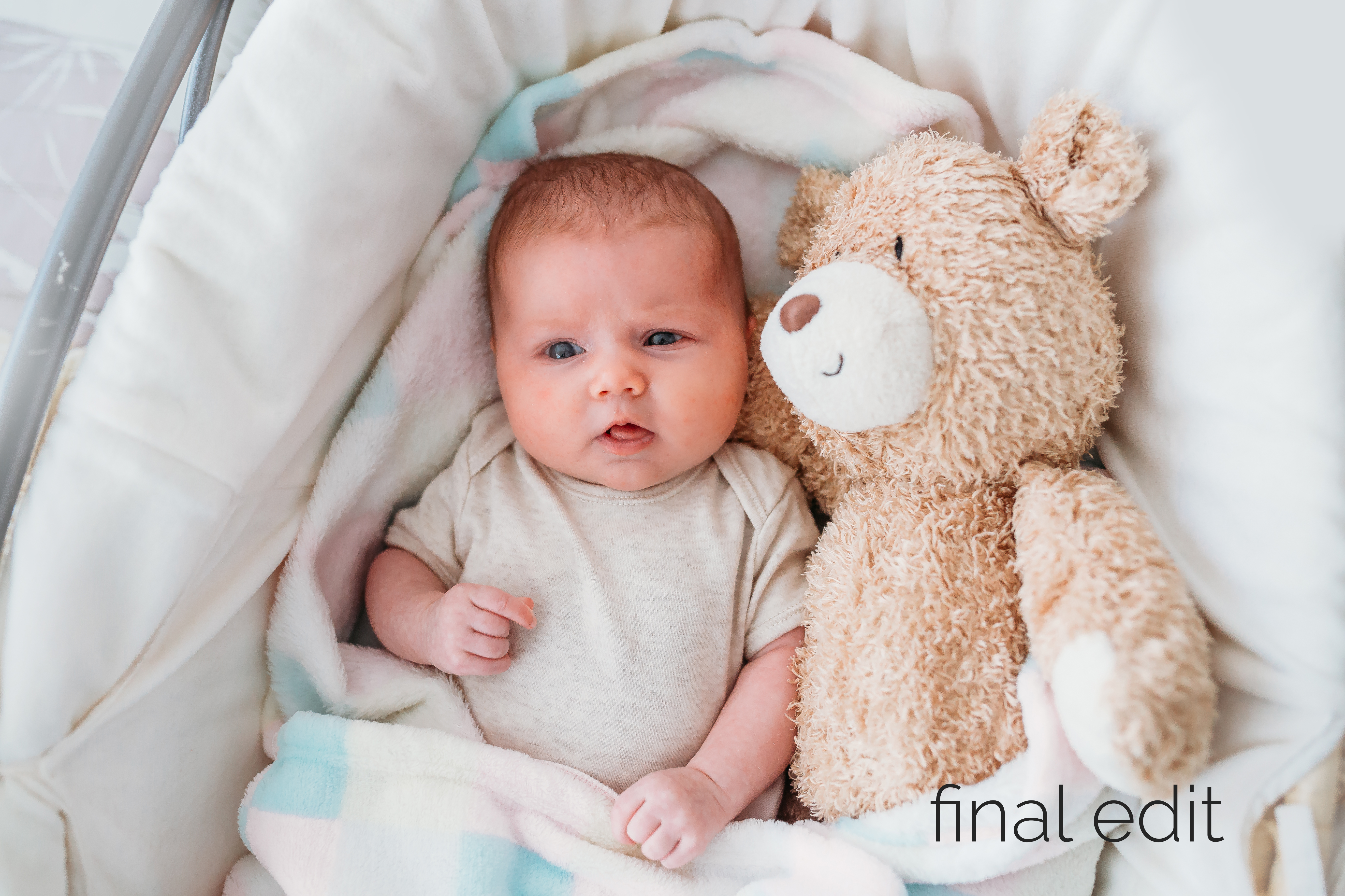 To give your baby’s images the beautiful final look, here is what I normally do: